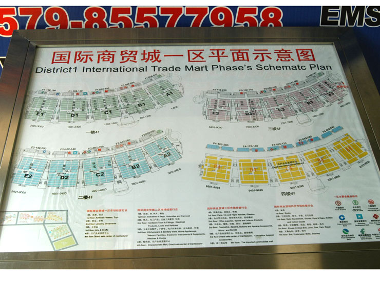 中國義烏國際商貿城一區(qū)市場于2001年10月奠基,2002年10月22日正式投入營運,市場占地420畝,建筑面積34萬平方米,總投資7億元,分為主體市場、生產企業(yè)直銷中心、商品采購中心、倉儲中心、餐飲中心五大經(jīng)營區(qū),共有商位10000余個,經(jīng)營戶10500余戶。一樓經(jīng)營花類、玩具;二樓經(jīng)營飾品;三樓經(jīng)營工藝禮品;四樓開辦了中小生產企業(yè)直銷中心、臺商館,東輔房為外貿企業(yè)采購服務中心。 國際商貿城是一個集現(xiàn)代化、國際化、信息化于一體的商品交易市場。自開業(yè)以來,一是實現(xiàn)了由傳統(tǒng)貿易向以商品展示、洽談、接單和電子商務為主的現(xiàn)代化經(jīng)營方式的轉變,被國內外客商譽為“永不落幕的博覽會“;二是實現(xiàn)了國際貿易超過國內貿易的轉變,每天客商達4萬人次,外商達5000人次,商品外貿出口率達60%以上,90%以上商位承接外貿業(yè)務,商品銷往140多個國家和地區(qū);三是實現(xiàn)了市場硬件的智能化,整個市場人流、物流、信息流暢通,場內安裝電梯、自動扶梯37座,汽車可直上二、三、四層,整個市場安裝了13000多個寬帶網(wǎng)絡接口,每個商位都可上網(wǎng)交易和查閱信息。