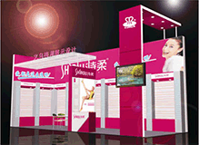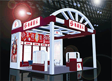 Booth set up with wood material:Wood frame with island-like scenery and multi-media sound presents adeep and distinctive impression to the audience